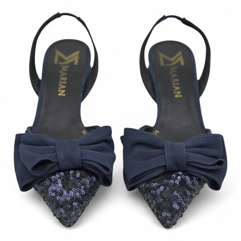 Slingback γόβες με glitter, από την εταιρεία Marian. Είναι το σχέδιο 1305, με διακοσμητικό φιόγκο στη μύτη.